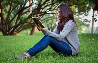 Pronounced ree-kin, this is a simple button-up cardigan with 0 to 2 inches of ease, worked from the bottom up. While the hem, cuffs and collar are ribbed, the sleeves are worked top down and in the round with a cable pattern through the length of the sleeve.