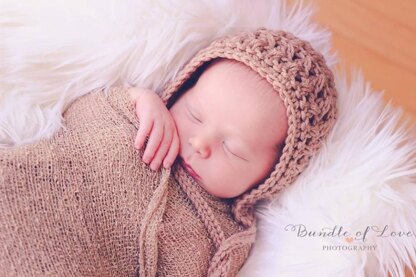 This is a PDF crochet pattern for a sweet baby bonnet in five sizes with a great texture.