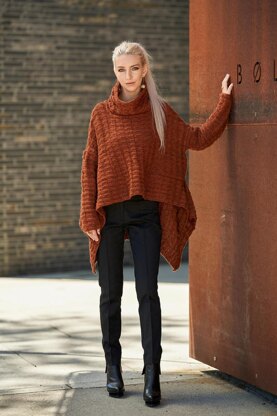 Yaelle is a high-low pullover with an all over check pattern, swinging side panels and pockets. Named after Hebrew for the mountain goat, as it can take you everywhere. The pullover ends in a high loose turtle neck collar. Yaelle’s side panels are picked up and knitted after the side seams are done. The pockets are knitted at the same time as the front, including the pocket band and the lining. Wear Yaelle as you like; hanging loose or gathered with a belt or with a shawl pin at the front. The pullover is knitted in the pelt wool yarn Tinde with lustre from Hillesvåg Ullvarefabrikk.