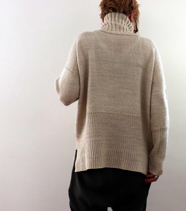 Yana lite is worked seamlessly from the top down. Knitting starts from a cast-on at the shoulders. Short rows are used to shape the shoulders, then each part is joined to work the back down to the underarm. Stitches are then picked up at the shoulders to work each front. The work is then joined at the underarm and worked in the round to the split hem with set in pockets. Sleeve stitches are picked up around each armhole and sleeves are worked from the top down in the round to the cuffs with 1x1 Rib panels. The cowl neck is worked last.