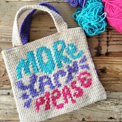 Express your love for all things yarn and fiber arts with your very own Yarn Lover Mini Project Tote. This crochet pattern comes complete with pattern graphs, written instructions and video tutorials to create your own "More Yarn Please" fabric-lined tote bag or wall hanging. A perfect stash-busting project, this pattern is perfect for any crochet artist.