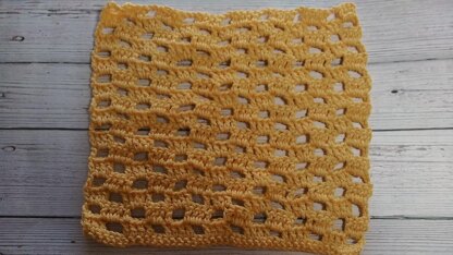 • DESCRIPTION: Yellow Checks is a quick, cute pattern that makes a lovely open fabric. With the tilted blocks of double crochet there is a touch of whimsy in this functional but not boring washcloth.