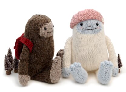 Materials for Yeti and Sasquatch: 125 g of chunky weight yarn in white or brown (MC), 25 g of chunky weight yarn in light blue or tan (CC)