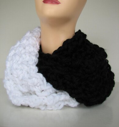 This pattern was inspired by the yin yang symbol. The black and white contrast looks great together. The pattern is great for beginners. It is made with super bulky weight yarn, so it works up quickly.