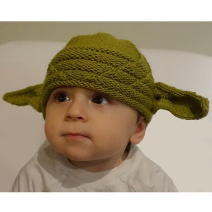 This Yoda hat is a quick knit but has a few techniques that make it advanced beginner. The hat is knit in the round mainly in reverse Stockinette stitch, with some cable & slipped stitch details. The ears are knit flat and come with detailed instructions for placing & shaping.