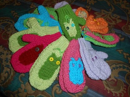Sizes: X-Large-Adult-2¼” ribbing, 7½” from bottom of ribbing to bottom of mitten.