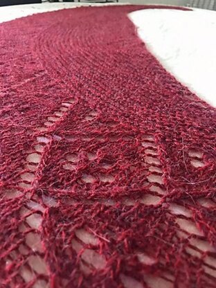 Ho molto amato costruire questo scialle. Ho cambiato filato e numero dei ferri molte volte prima di incontrare il giusto equilibrio. Inoltre era la prima volta che mi cimentavo con il pizzo su uno scialle e quindi mi ha resa molto felice riuscire a gestire l’aumento del numero delle maglie, da un lato, e l’inserimento armonioso del pizzo, dall’altro. Insomma una bella esperienza in cui ho ancora una volta avuto la conferma che le cose preziose richiedono sforzi e lavoro…anche verso sé stessi.