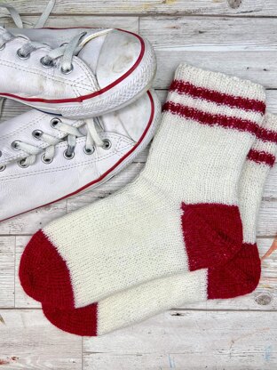 I calseti, aka Your Basic Gym SocksThis pattern has been inspired by the classic gym red striped-white socks. It gave me the chance of coming up with a very easy to follow construction in two variants (top-down or toe-up) which can be used and customised as your first knitted socks. The afterthought heel featured in the pattern is probably the easiest heel in the world. The body of the socks has a simple but effective game of knits and purls, which gives outstanding comfort and elasticity. The name ‘i calseti’ is the Venetian word for basic socks. Hope you enjoy!