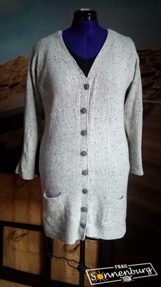 Yrsa ist ein Long-Cardigan mit einer raffinierten Nackenkonstruktion, die dennoch einfach zu stricken ist. Optisches Higlight ist der Y-förmige Halsausschnitt im Perlmuster, welches sich entlang der Blenden und Säume fortsetzt. Die Konstruktion ist nahtlos, und die Anleitung beinhaltet einen Baukasten mit folgenden Stilelementen: