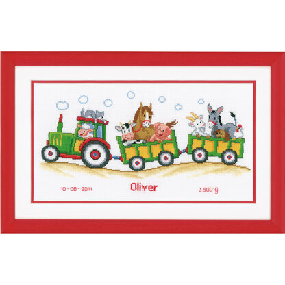 Vervaco Tractor Birth Sampler Cross Stitch Kit - 36cm x 19cm
