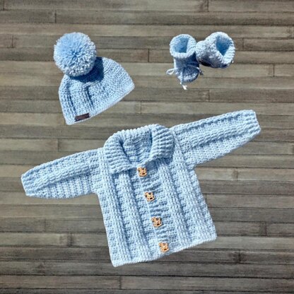 Zeb Cardigan Hat and Booties Set 0-3M - 2 Yrs
