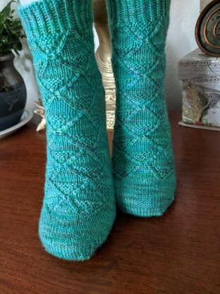 The Zenity socks pattern are a joy to knit. With easy lace patterns, heel flap and wedge toe, not only do they knit up quickly and easily, they're also scrumptious to wear!
