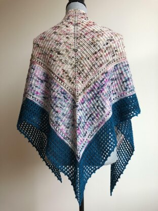 Zerbinetta is a top-down triangle shawl that features a textured rib stitch, eyelet details, and a lacy border. This is an awesome pattern for playing with fades, contrasting colors, bright stripes, speckles, or other adventurous yarn combinations!