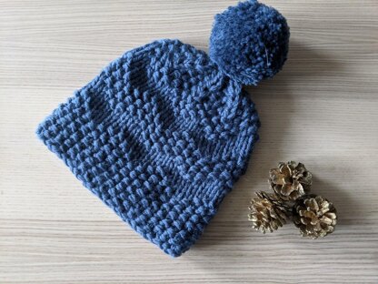 A quick, chunky knit hat in a simple textured pattern. Perfect gifting material when you need something at the last minute - you can easily knit it up in a single evening. The pattern contains instructions for three sizes.