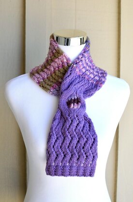 This scarf is a fun and seamless zigzag lace pattern. It has a unique look with two pull-through ways to wear. Stitches are easy to remember and good for intermediate knitters who has basic knowledge of lace and cable.
