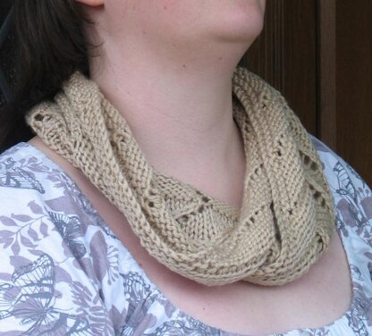 The cowl is knitted using the moebius cast on technique, which is easy to learn. The yarn is knitted on bigger needles than usual giving a lovely draping fabric. You could use any Aran weight yarn you wish.