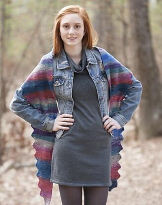 A crescent-shaped scarf worked entirely in garter stitch with a zig zag edge.