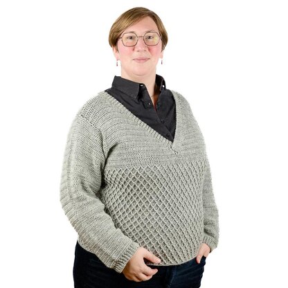 - 4XL à 5XL (taille 46/48) : 17 pelotes soit 2075m Ce modèle est réalisable également avec un fil d’une grosseur différente.