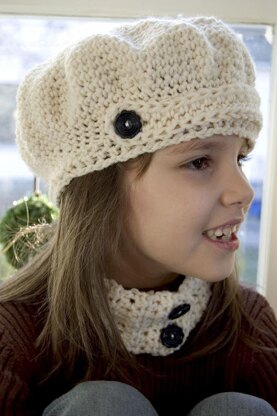 This crocheted beret was inspired by my daughter, Zoe. It features a sweet strap that is attached to the beret with two buttons.