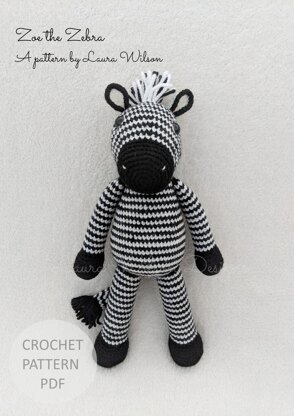 This is a downloadable PDF pattern written in US terminology. To make Zoe the zebra you will need to know how to do the following: