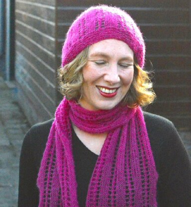 The Zoel Scarf is a very soft and delicate scarf knit using laceweight mohair yarn. It is a great pattern to learn some basics of lace knitting or to get familiar with using this type of yarn. Because of the simple two-row lace, this pattern not only lets the yarn shine but also makes for a wonderful portable project. Pair it with the Zoel Hat to warm up a cold day in autumn or winter. Stitches used include knit, purl, yo, k2tog and the double decrease sl1-k2tog-psso. The pattern is suitable for the beginning lace knitter.