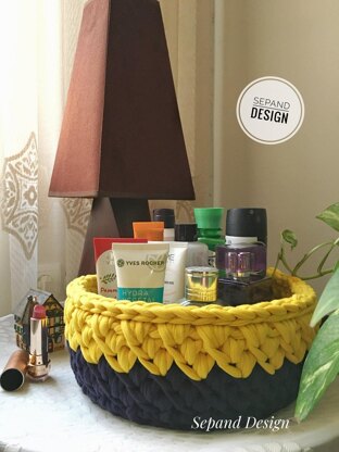 Zpaghetti yarn basket -navy and yellow (t-shirt)