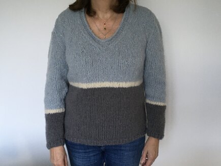 Thought I’d try this yarn, as there are some lovely patterns. It’s a bit like knitting with candy floss at first, but actually gives a lovely light comfy to wear result. Described as felted effect on pattern. Colours were nice too. One ball was full of lumpy joins though so not sure I would use again. Nice quick knit though. And nice to have a v neck. Will probably try the pattern with another yarn.