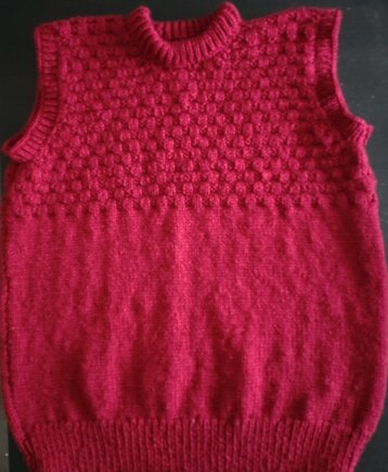Notizen Knitted as 3rd size sweater, no change to length. However armholes are knitted as sweater rather than slipover.