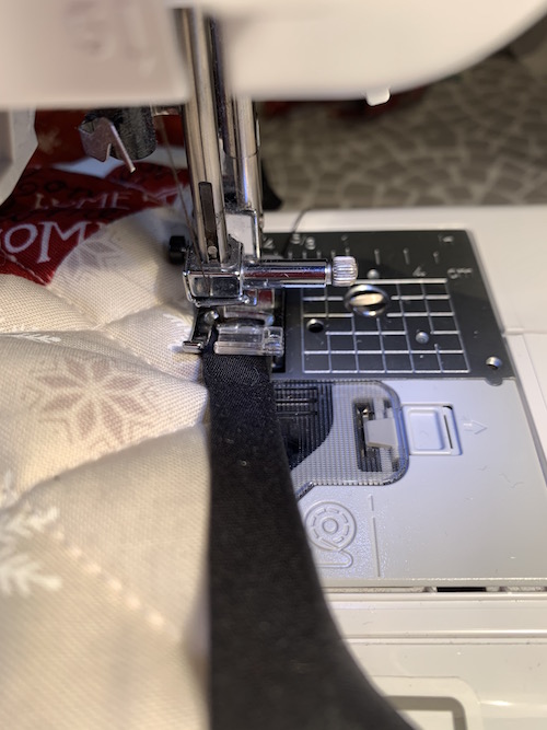 If you have a bias-binding foot for the sewing machine, use this to attach the bias across this edge.