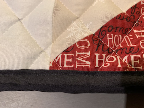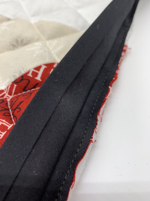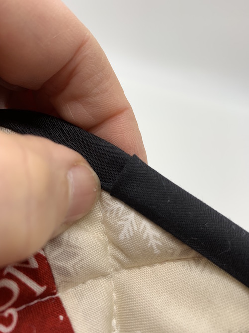 If not, open up the tape and align with the straight edge (as in picture) and sew along to the end, fold over this tape to the other side and sew through all layers to secure the binding.