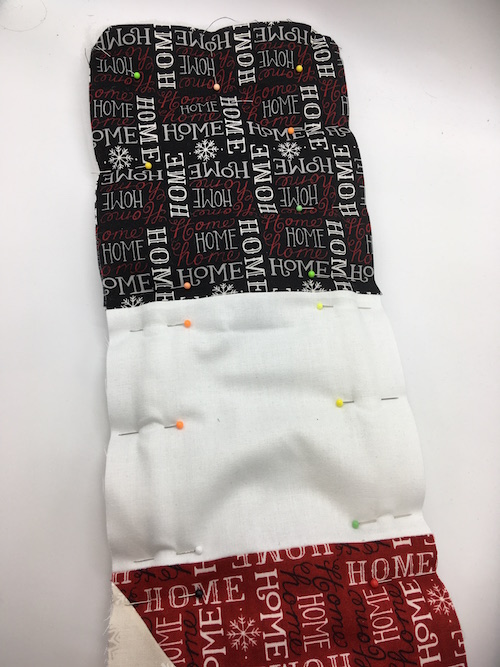 If you have a quilting foot for the sewing machine, use this to guide you in sewing across the fabric to create the quilt effect. Start in the middle of the fabric and work outward towards the ends in straight lines.