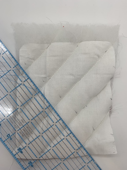I have used gaps of 1½”, repeat this for both pockets and then trim off any excess wadding from around the edges.