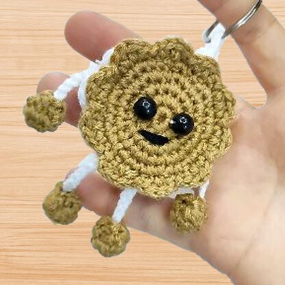 Crochet your own Amigurumi Biscuit Keychain with this beginner-friendly pattern. The PDF includes clear written instructions with step-by-step photos and a video tutorial link inside the PDF for extra guidance.