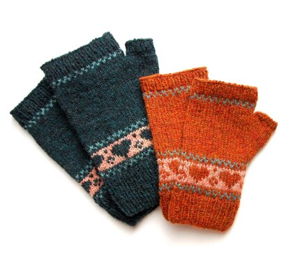 This is a pattern for a pair of mitts both work the same and in the round using the Fair-Isle knitting technique.