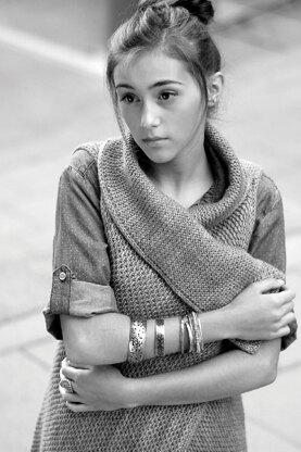 size XS (S, M, L), 1X(2X, 3X, 4X, 5X) This garment has a loose, unstructured fit where the fronts fully overlap. It is important for this garment to fit the width of your shoulders and have the appropriate armhole sizing for your body for a comfortable fit. The vest can easily be shortened or lengthed by casting on fewer or more sts (keeping the cast on number an odd amount) depending on your desired length. See Schematic.