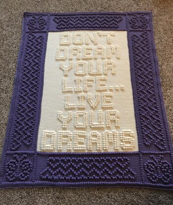 Blanket reads DON’T DREAM YOUR LIFE... LIVE YOYR DREAMS