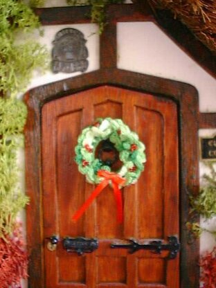 Set of two crochet patterns (also available as separate patterns) for a 1:12th scale Christmas fireplace garland, swag, Advent wreath and door wreath for a dolls house