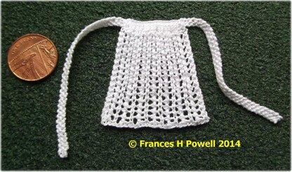 Finished size: waist 2.5 cm/1-inch, ties 6.5 cm/2¾-inches long, waist to hem 4.25 cm/1¾-inches, width at hem 4.25 cm/1¾-inches.