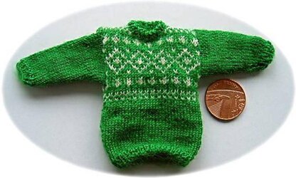 For Intermediate Knitters. This project is not suitable for a first project in miniature knitting, but is simple enough to be attempted as a second or third project. The pattern involves following a chart for the two colour section, but notes on working with 2 colours are included