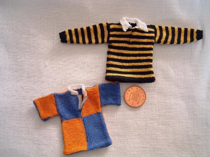 1:12th scale pattern for Men’s Rugby shirts for 15 cm tall dolls house dolls.