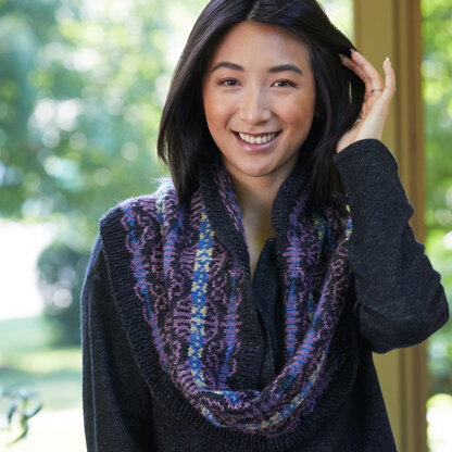 Yarns Dorset is a lovely tweedy colourwork cowl inspired by Art Deco jewelry
