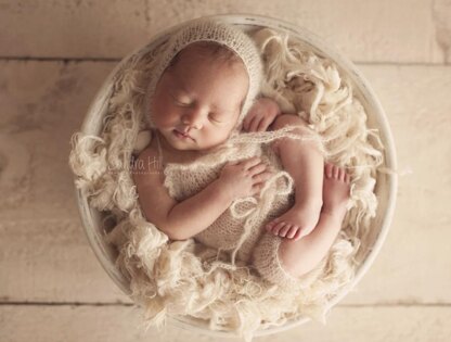 Description: This is a PDF knitting PATTERN (with CROCHET edge and ties) for a beautiful newborn mohair jumpsuit/overall with a matching bonnet. The jumpsuit is designed with halter neck ties so that you can easily adjust to fit a baby.