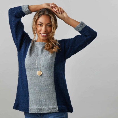 Valley Yarns Chionodoxa is a lovely women’s crewneck two-toned intarsia tunic knit in Haydenville. The sweater is squishy, warm, and perfect to wear with your favorite jeans. Chionodoxa is knit flat in pieces from the bottom up. The sleeve stitches are picked up along the armhole edge and worked down to the cuff. The neckband stitches are picked up along the neck edge and worked in the round. Valley Yarns Haydenville is an extraordinarily soft blend of superwash Merino and acrylic microfiber. A worsted-weight yarn with a slight sheen, Haydenville is an ideal choice for Chionodoxa.