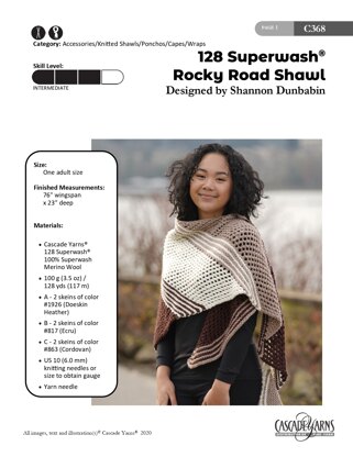 128 Superwash Rocky RoadShawl in Cascade Yarns - C368 - Downloadable PDF