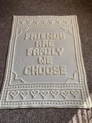 Blanket reads “FRIENDS ARE FAMILY WE CHOOSE”