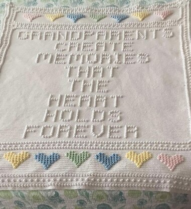 Blanket reads: GRANDPARENTS CREATE MEMORIES THAT THE HEART HOLDS FOREVER
