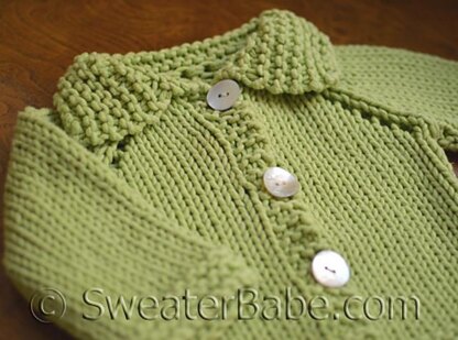 A delightful baby cardigan to knit quickly with a soft, chunky cotton/acrylic yarn and size 10-1/2 knitting needles. A great gift for a newborn. Ideal for the advanced beginning knitter.