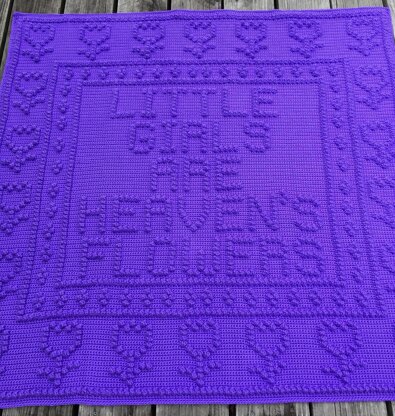 Blanket reads LITTLE GIRLS ARE HEAVEN'S FLOWERS