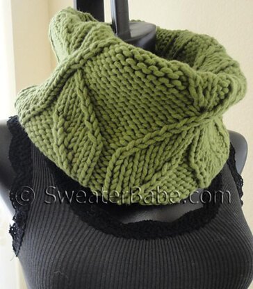 Chunky cowls stand up well against a cold wind. This one has a striking pinwheel design that is worked with just knits, purls, and simple twisted stitches. Choose a yarn like the one shown here with excellent stitch definition and a vibrant color.