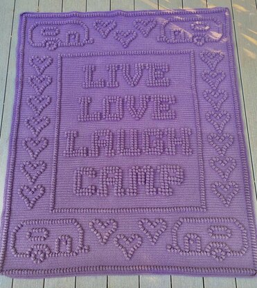 Blanket reads: LIVE LOVE LAUGH CAMP